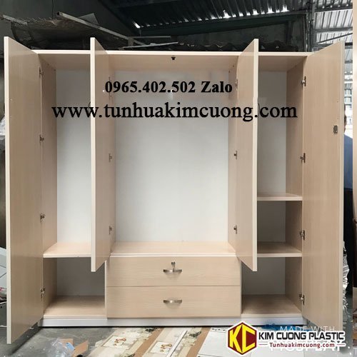 Tủ nhựa Kim Cương 4CA112HK vân gỗ sồi Kích thước: Chiều cao 1m85 – Chiều ngang 1m65 sâu 48cm .Nhựa cao cấp 2 lớp nhập từ Đài Loan.100% chống mối mọt, cong vênh, bất kể điều kiện thời tiết.Không biến dạng, phồng rộp như gỗ ép.Không có hại, thân thiện với môi trường.Dễ dàng để làm sạch.Sản phẩm được xử lý chính xác, chi tiết từng chi tiết.Các loại màu sắc, tươi sáng, dễ dàng lựa chọn theo sở thích của khách hàng.Bảo hành hơn 5 năm, hơn 10 năm. HOTLINE: 0965402502 (ZALO)